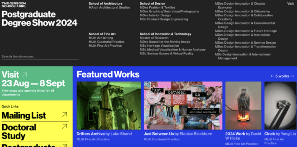 그 학교에서 어떤걸 가르치고, 최종적으로 나온 결과물들의 집합이니까요. 직접 학생 작품들을 보시면 재미있는 것들이 많으니, 흥미로운 이미지들은 클릭하셔서 한번 설명을 읽어보시면 도움이 되실 겁니다.