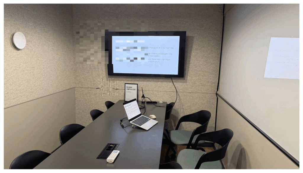 - 대형 스크린 & 화이트보드: 작업 이미지를 함께 보며 구체적인 피드백